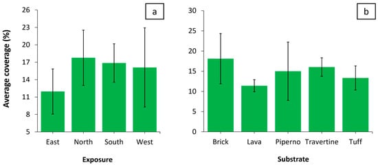 - Motti, R.; Bonanomi, G. Vascular Plant Colonisation of Four Castles in Southern Italy: Effects of Substrate Bioreceptivity, Local Environment Factors and Current Management. Int. Biodeterior. Biodegrad. 2018, 133, 26–33. [Google Scholar] [CrossRef]