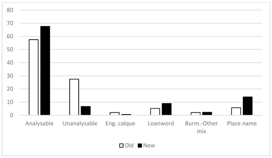 Proportions (%) of various naming strategies among older and newer ornamental plants. See text for details.