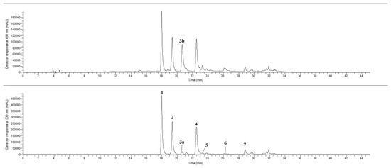| 3a * | 20.65 | 468 | 347 | MS2 (347): 303 (100), 137 (93), 259 (57), 106 (44), 194 (14), 164 (12) | Miraxanthin-V [51,55] | nd | 0.350 ± 0.007 a | nd | 0.14 ± 0.002 b |