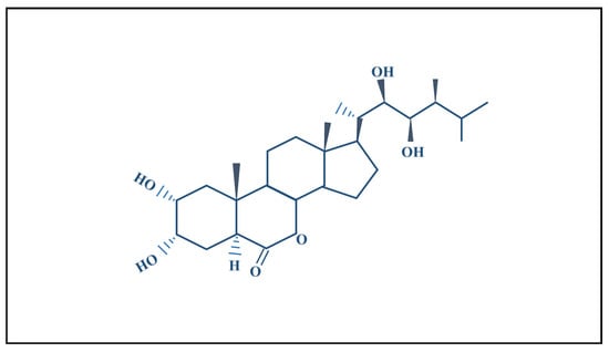 Brassinosteroids (BRs) are plant steroid hormones influencing key physiological processes crucial to plant growth and stress resistance. These hormones play a vital part in sparking seed germination, lengthening stems, growing roots, and shaping overall plant structure. They boost the work of antioxidant enzymes, which build up the plant’s defense against various environmental stresses such as lack of water, too much salt, and extreme heat or cold. Moreover, BRs adjust plant immune responses, helping protect against many harmful organisms. By improving photosynthesis and increasing crop output, BRs show their worth in farming. Because they do not harm the environment and are not toxic, BRs are a great choice for eco-friendly farming methods. As of now, more than 70 epibrassinolides have been identified, which indicates the diversity of brassinosteroids in plant physiology. Among the 70 identified, the only commercially available brassinosteroids are 28-homobrassinolide and 24-epibrassinolide, broadly utilized to improve plant growth, crop yield, and stress tolerance [] (See Figure 1).