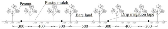Layout of drip irrigation in peanut field under film mulching (mm).