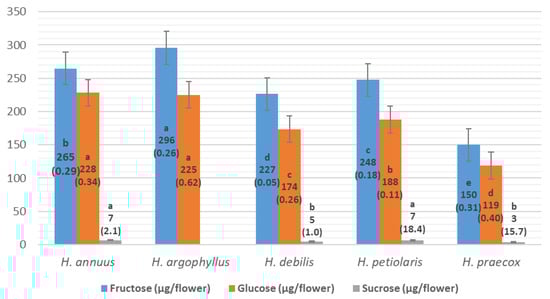 2.2. Analysis of the Main Sugar Components of Nectar/Disc Flowers
