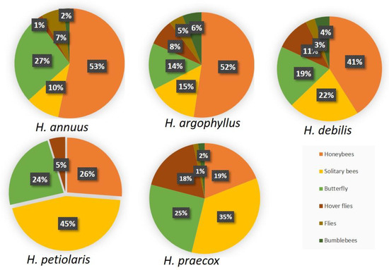 - Bergonzoli, S.; Romano, E.; Beni, C.; Latterini, F.; Lo Scalzo, R.; Scarfone, A. Nectar dynamics and pollinators preference in sunflower. Insects 2022, 13, 717. [Google Scholar] [CrossRef]