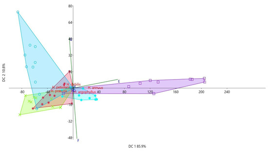 - Jocković, J.; Rajčević, N.; Zorić, L.; Jocković, M.; Radanović, A.; Cvejić, S.; Jocić, S.; Vujisić, L.; Miladinović, D.; Miklič, V.; et al. Secretory Tissues and Volatile Components of Disc Florets in Several Wild Helianthus L. Species. Plants 2024, 13, 345. [Google Scholar] [CrossRef] [PubMed]