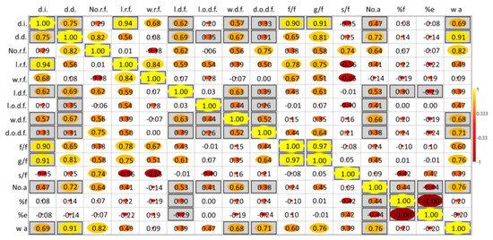 | Corolla width of r.f. (F) | 0.781 | −0.328 | 0.298 |