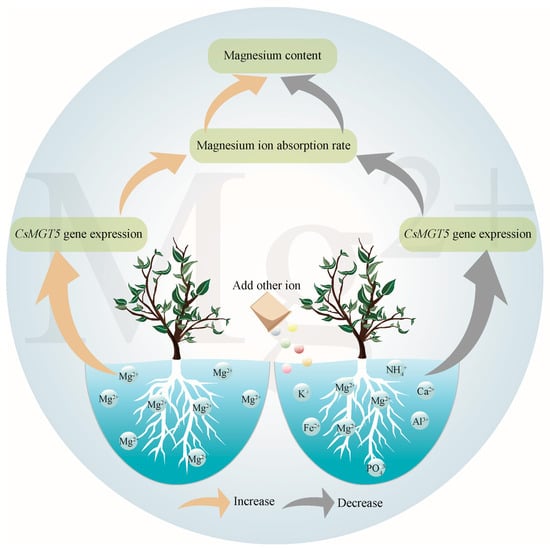 - Li, J.; Hu, X.; Zhang, R.; Li, Q.; Xu, W.; Zhang, L.; Guo, F.; Zhao, H.; Wang, Y.; Ni, D.; et al. The plasma membrane magnesium transporter CsMGT5 mediates magnesium uptake and translocation under magnesium limitation in tea plants (Camellia sinensis L.). Sci. Hortic. 2023, 310, 111711. [Google Scholar] [CrossRef]