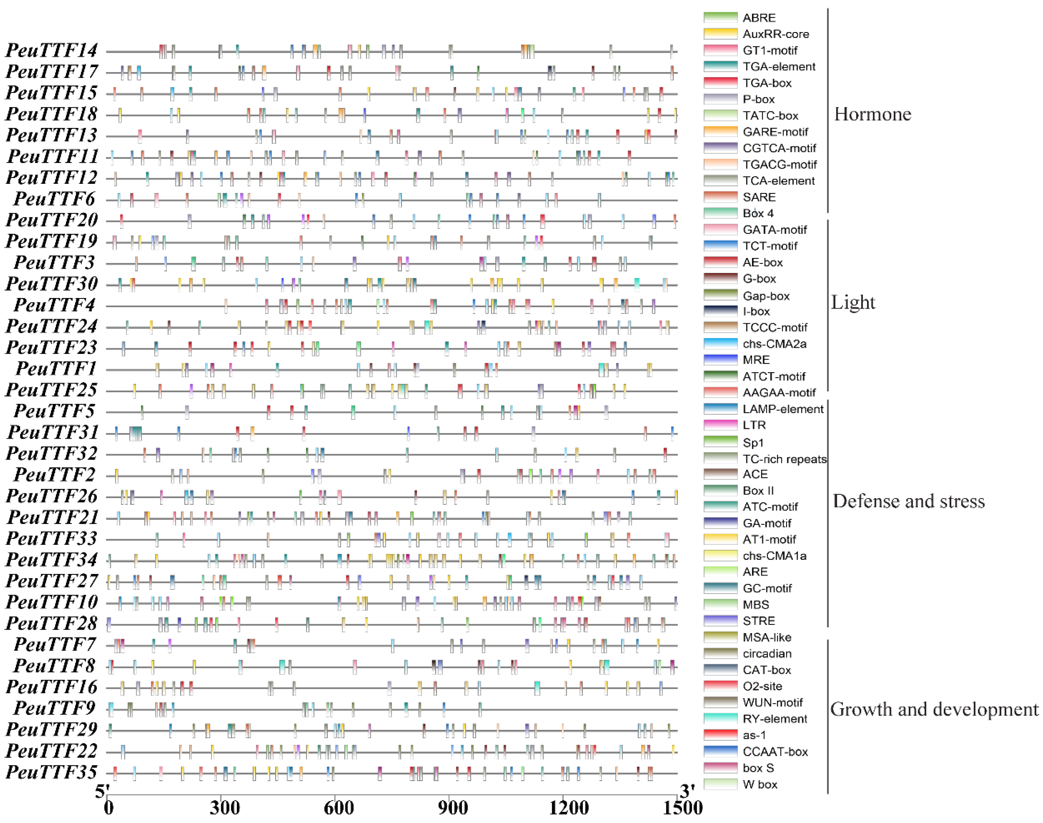 2.3. Forecast Inquiry of Cis-Acting Elements of TTF Family in Poplar Species