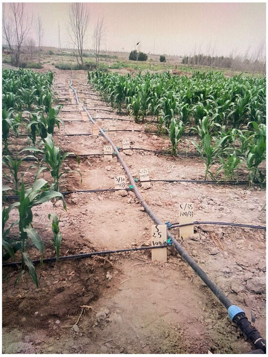 Figure 6. Field experimental plots of maize crop with drip irrigation system near the city of Rifai, Dhi Qar Governorate, Iraq.
