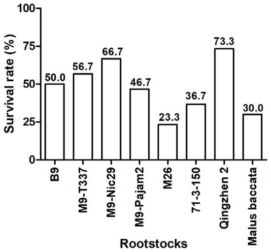 Figure 3). Besides, the survival rate of ‘Harlikar’ grafted onto M series such as ‘M9-T337’, ‘M9-Nic29’ and ‘M9-Pajam2’ was higher than that of ‘Harlikar’ grafted onto ‘