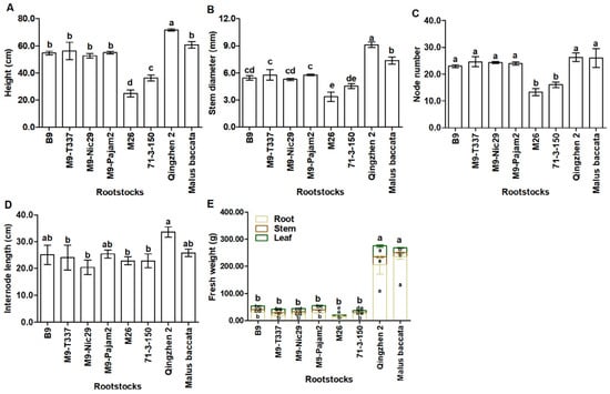 Figure 3E). And the above five rootstocks could be used as candidate dwarfing rootstocks for ‘Harlikar’, ‘71-3-150’ could be prioritized in north China, where the climate is cold and dry in winter [