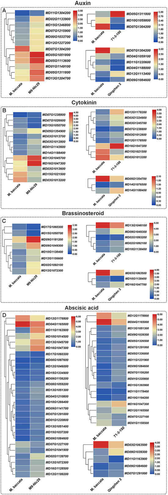 Figure 9B,D). These genes may be closely related to the branching angle formation in apple.