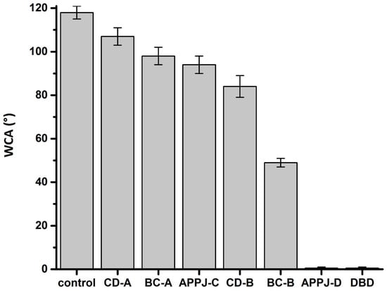 The water contact angle of black locust seeds treated with different NTP sources for 30 min.