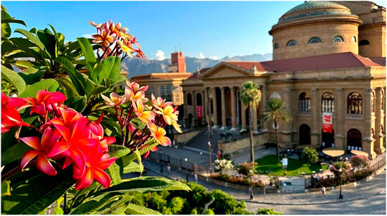 - Raimondo, F.M.; Mazzola, P.; Bartoli, F. Analisi della componente vegetale di Villa Palmeri nella Città di Termini Imerese (Palermo). Quad. Bot. Ambient. Appl. 2022, 33, 21–28. [Google Scholar]