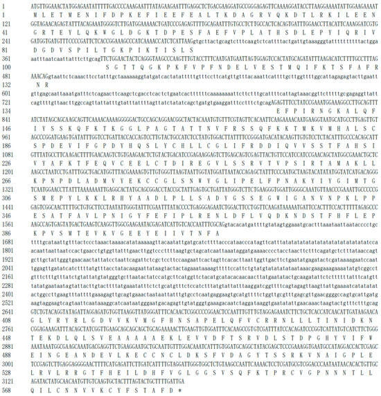 2.2. Cloning of the PgJAR1 Gene from P. ginseng and Its Sequence Analysis
