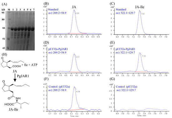 4.5. Prokaryotic Expression of PgJAR1 and Enzyme Assay