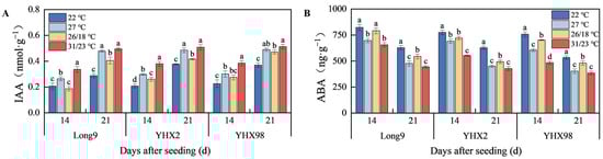 3.2. Effect of Temperature on the Hormones of Sweet Potato Storage Roots