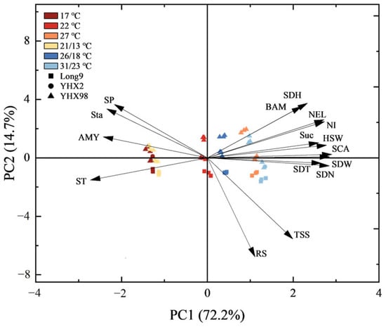- Dong, S.; Xie, B.; Hou, F.; Li, A.; Wang, Q.; Zhang, L. Effect of Temperature during Root Germination on Quality Traits of Sweet Potato. Shandong Agric. Sci. 2018, 50, 82–87. [Google Scholar] [CrossRef]