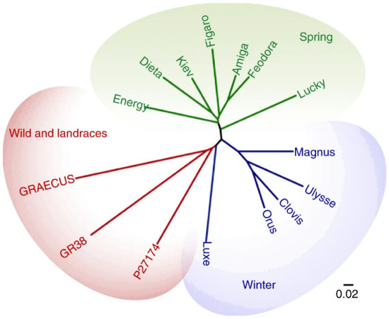 - Cheng, S.; Feng, C.; Wingen, L.U.; Cheng, H.; Riche, A.B.; Jiang, M.; Leverington-Waite, M.; Huang, Z.; Collier, S.; Orford, S.; et al. Harnessing Landrace Diversity Empowers Wheat Breeding. Nature 2024, 632, 823–831. [Google Scholar] [CrossRef]