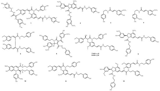 - Sun, J.; Tong, L.T.; Tu, P.F.; Chen, L.L.; Xu, X.; Song, Y.; Yang, X.X.; Guo, Z.B.; Zou, X.; Sun, C.X.; et al. Lignanamides: A comprehensive review of chemical constituents, biological activities, extraction methods and synthetic pathway. Food Chem. 2024, 460, 140459. [Google Scholar] [CrossRef] [PubMed]