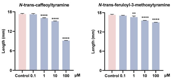 Recent research indicated that lignanamides had not been isolated from the tubers of G. elata Bl. [], while these structures were the predominant secondary metabolites in the seeds of this plant. This revealed a significant change in the metabolic products of G. elata Bl. during germination, with plants producing metabolites that benefit their specific growth stages. Considering the unique dual biological activities and various pharmacological properties of lignanamides, it is likely that these compounds play an important defensive role for the G. elata Bl. seeds, helping them resist adverse environmental conditions. Moreover, since the seeds are not currently used as a medicinal part of the G. elata Bl., this work provided new potential for the medicinal value of the G. elata Bl. seeds by revealing the pharmacological activities of lignanamide analogs.