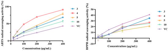 Antioxidant activities of 3, 4, 5, and 10.