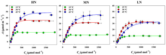 - Yamori, W.; Nagai, T.; Makino, A. The rate-limiting step for CO2 assimilation at different temperatures is influenced by the leaf nitrogen content in several C3 crop species. Plant Cell Environ. 2011, 34, 764–777. [Google Scholar] [CrossRef]
