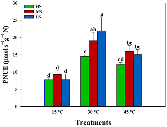 3.3. Effects of N Supplies on Leaf PNUE Under Low and High Temperatures