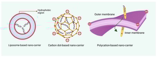 Various types of nano-enabled nucleic acid carriers. These carriers ensure the efficient delivery of nucleic acid in the target cell without damage to environmental or cellular factors. Figure created with Biorender “https://app.biorender.com/user/signin (accessed on 20 January 2024)”.