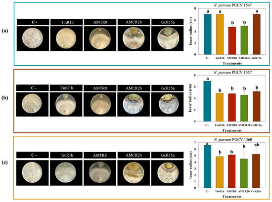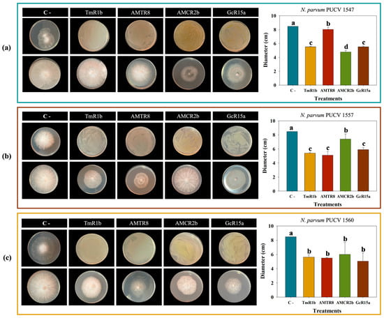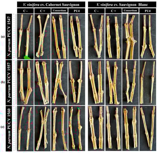 APA StyleCastillo-Novales, D., Vega-Celedón, P., Larach, A., Seeger, M., & Besoain, X. (2025). Native Bacteria Are Effective Biocontrol Agents at a Wide Range of Temperatures of Neofusicoccum parvum, Associated with Botryosphaeria Dieback on Grapevine. Plants, 14(7), 1043. https://doi.org/10.3390/plants14071043