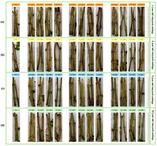 - Gramaje, D.; Armengol, J. Effects of hot-water treatment, posthot-water-treatment cooling and cold storage on the viability of dormant grafted grapevines under field conditions. Aust. J. Grape Wine Res. 2012, 18, 158–163. [Google Scholar]