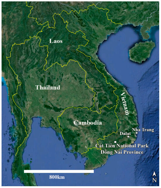 This study is a continuation of a series of studies on microalgae and cyanobacteria in tropical forest soils of Cát Tiên National Park (South Vietnam). The work has been ongoing since 2019, with previous studies describing diatom species new to science (Mayamaea vietnamica Glushchenko, Kezlya, Kulikovskiy et Kociolek [26], three species of Placoneis Mereschkowsky [27,28,29], Sellaphora terrestris Glushchenko, Kezlya, Maltsev, and Kulikovskiy [30] and six species of Pinnularia Ehrenberg [31]), as well as representatives of cryptophyta [32] and cyanobacteria [33].