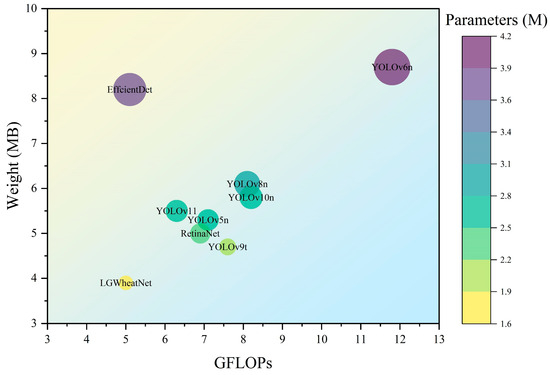 Current wheat spike detection networks face two primary challenges. First, high-precision models often require handling extensive parameters and complex floating-point calculations, making deployment on resource-constrained devices difficult. Second, while lightweight models are more streamlined in terms of parameters and computational needs, their detection accuracy is often not optimal [33]. Additionally, the visual characteristics of wheat spikes change across different growth stages, demanding higher adaptability and generalization capabilities from the models [34]. This complexity requires models to be designed with a balance of efficiency and accuracy. The model needs to be sufficiently complex to capture subtle variations in wheat spike features, yet simple enough for effective deployment in resource-limited environments. Furthermore, it must be flexible enough to adapt to changes in wheat spike characteristics over time.