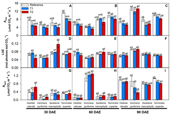 | S. macrophylla | T1 | 83 ± 6 Aa | 84 ± 3 Aa | 97 ± 16 Aa |