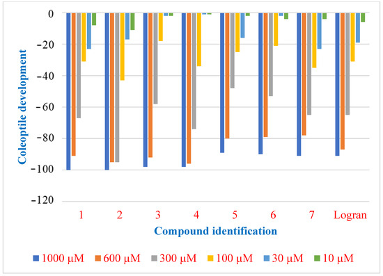 Bioactivity evaluation of compounds 1–7 and Logran on coleoptile development.