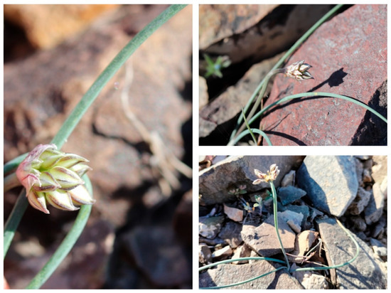 - Ju, E.J.; Shukherdorj, B.; Nudkhuu, N.; Seung-Yoon, O.; Jun-Ho, S.; Ziyoviddin, Y.; Komijlon, T.; Hyeok, J.C. Flower morphology of Allium (Amaryllidaceae) and its systematic significance. Plant Divers. 2024, 46, 3–27. [Google Scholar] [CrossRef]
