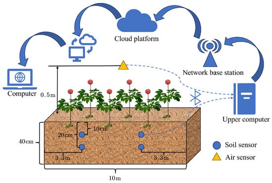 Moisture has an important effect on crop growth, and different amounts of irrigation are required at different growth stages to maintain crop health [5]. In addition, different irrigation methods can have different effects on crops [6]. In order to obtain the characteristics of soil irrigation systems, mobile platforms and data processing algorithms can be developed in conjunction with portable environmental sensors [7]. What is more, the effective combination of deep learning and IoT can optimize the irrigation strategy of the planting site so as to increase the crop yield [8,9].