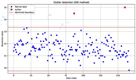 The red data points exceeding the defined boundaries in Figure 5 represent identified outliers. In our processing methodology, these anomalous values are systematically removed and replaced with the mean value of the dataset.