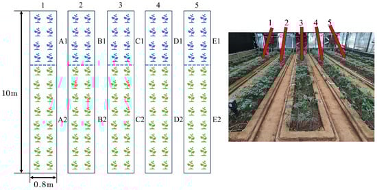 In the experimental design stage, within-group control and between-group control are two common types of control, which have different characteristics and application scenarios. In addition to the mutual experimental control between the five test fields, this experiment divided each field into experimental and control groups (about 1/3 of the experimental group and 2/3 of the control group) to form a within-group control. The experimental field is divided as shown in Figure 6.