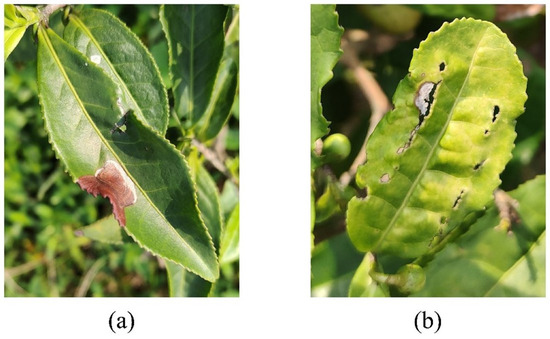 Tea (Camellia sinensis L.) is the second most consumed beverage in the world after water. The production and processing of tea not only strongly boost social and economic development but also promote global trade. However, some typical tea diseases can greatly reduce tea’s antioxidant activity, healthcare function, and commercial value. Failure to control and handle the spread of diseases in a timely and effective manner will also lead to reduced production and income [1]. Traditional tea disease detection mainly relies on manual inspection, and this labor-intensive method shows low accuracy due to visual fatigue and subjectivity of discrimination [2]. With the continuous development and application of artificial intelligence technology, especially deep learning technology, tea disease detection has gradually shown an intelligent and de-artificialization development trend [3,4,5].