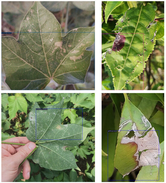 The plant leaf disease detection data set constructed in this study is partly self-collected data and partly from the network. Among them, tea disease data were collected from a tea garden in Ya’an City, Sichuan Province, China, covering two typical leaf diseases: tea anthracnose disease and tea brown blight disease. The other part of the data includes cotton fusarium wilt disease (Fusarium oxysporum Schl.sp.vasinfectum (Atk.) Snyder et Hansen) and cotton powdery mildew (Leveillula malvacearum Golov.). The above diseases are common diseases in agricultural planting and production, which are highly contagious and easy to lead to yield reduction and quality deterioration. Traditional chemical control methods are at risk of environmental pollution and limited control effects, while artificial control strategies will require significant amounts of energy and financial resources. Therefore, precise and non-destructive detection based on computer vision provides a sustainable and convenient solution that can help build a precise agricultural management system.