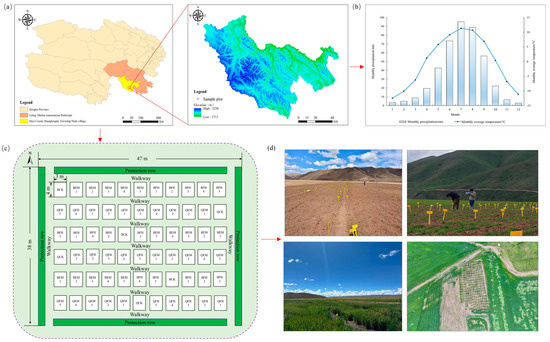 - For Avena sativa L. ‘Qingyin No.2’: apply 22.50 kg·ha−1 of compound microbial fertilizer in combination with 18,000 kg·ha−1 of livestock manure organic fertilizer.