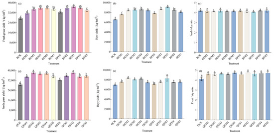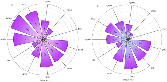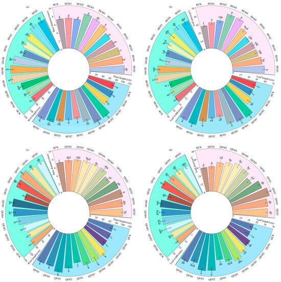 - For Avena sativa L. ‘Baiyan No.7’: apply 18.75 kg·ha−1 of effective microorganism fertilizer in combination with 18,000 kg·ha−1 of livestock manure organic fertilizer;
