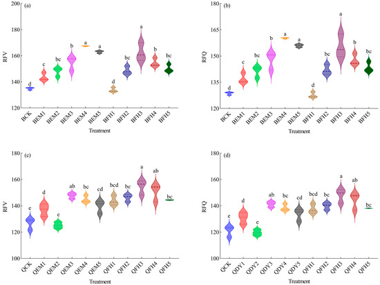 | QFH5 | 10.53 ± 0.42 cd | 3.56 ± 0.08 ab | 14.54 ± 0.73 bcd | 30.70 ± 1.05 c | 41.88 ± 0.56 bc | 59.31 ± 0.79 a |