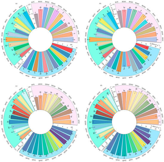 3.6. Effects of Microbial Fertilizer Treatments on Soil Enzyme Activity and pH in Oat Forage Fields