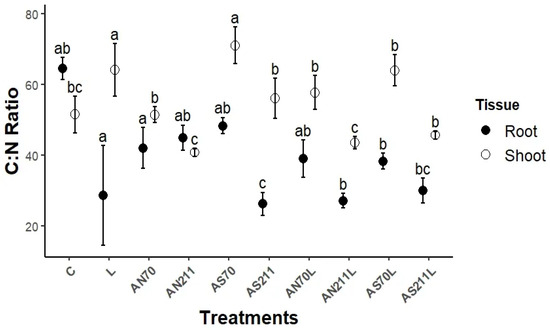| Treatments | Shoots (kg/ha) | Roots (kg/ha) | Shoot/Root |