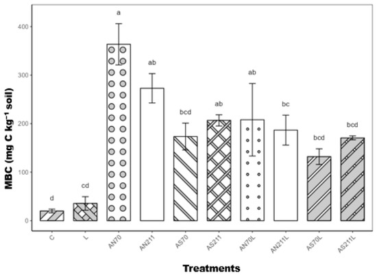 - Vance, E.D.; Brookes, P.C.; Jenkinson, D.S. An extraction method for measuring soil microbial biomass C. Soil Biol. Biochem. 1987, 19, 703–707. [Google Scholar] [CrossRef]