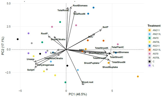 2.3.3. Multivariate Analysis of Plant, Soil, and Microbial Properties