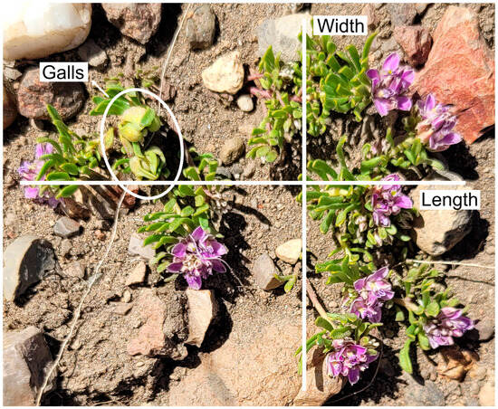 S. salasiana plants were inspected for galls during the spring of 2024. We found 98 plants, and for each plant, we measured the number of galls (gall abundance), the number of inflorescences, and the plant cover. The plant cover was estimated as an ellipse, measuring the length and width of the plant with a hand ruler (Figure 6, Table S1).