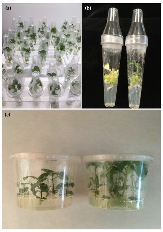 Confirmed transgenics were micropropagated in Wavin containers (Lab Associates B.V.) on both selective and non−selective LS medium and maintained in a growth chamber at 24 ± 1 °C, with a 16 h light–8 h dark photoperiod.