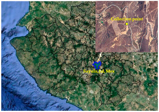 Whole plants, including roots, flowers, and leaves, were collected in August 2018 in the mountains of the municipality of Sayula, Jalisco, Mexico. The geographic coordinates are 19°49′31″ LN and 103°37′57″ LW at 1890 m.a.s.l. (Figure 7).